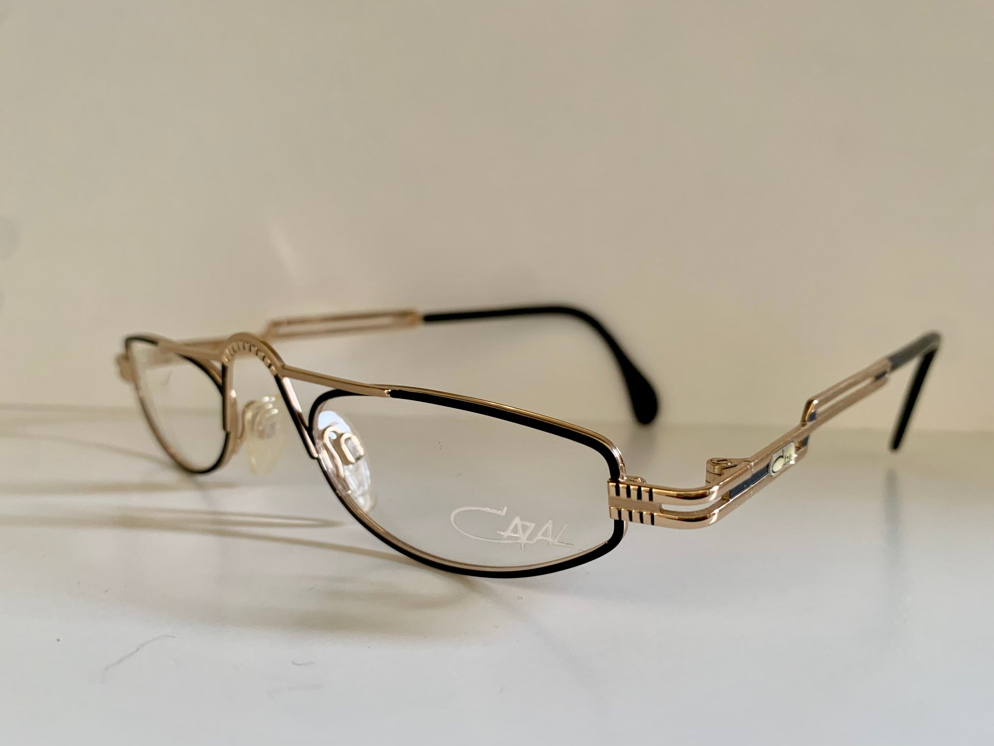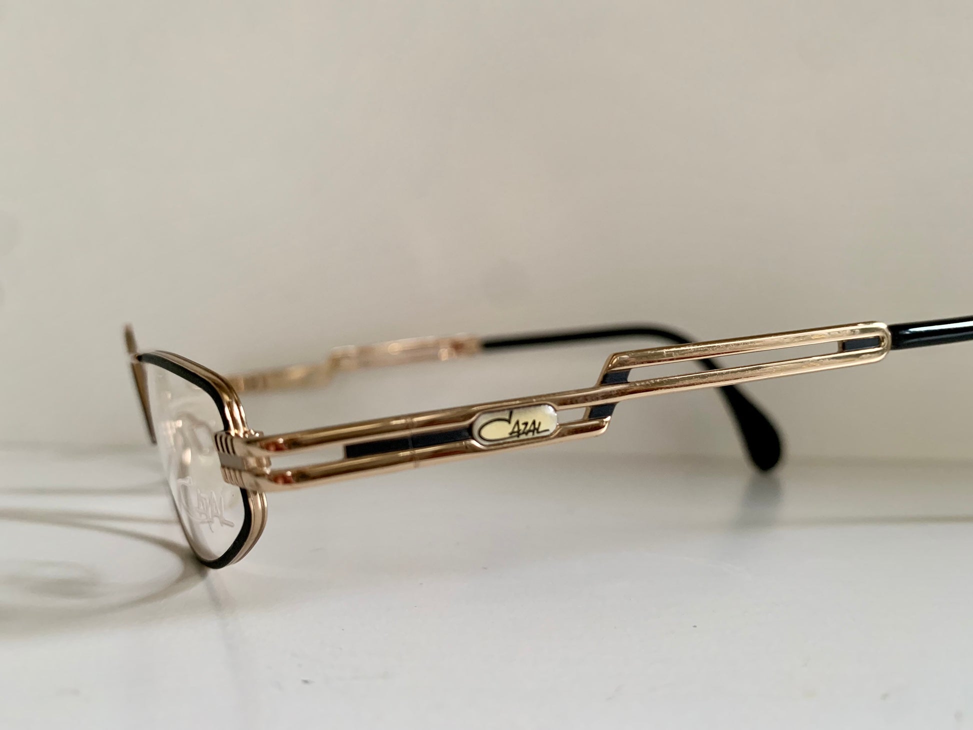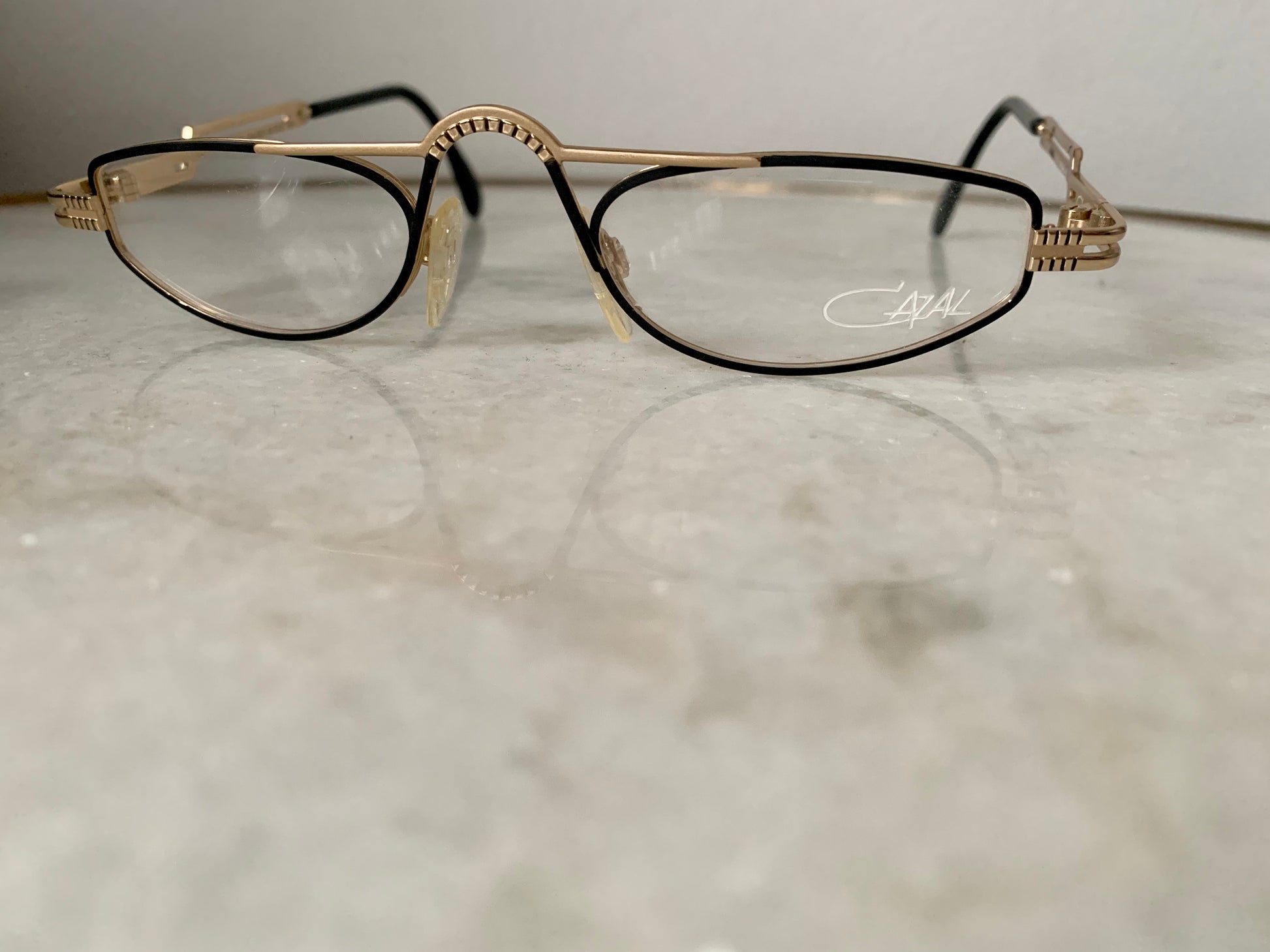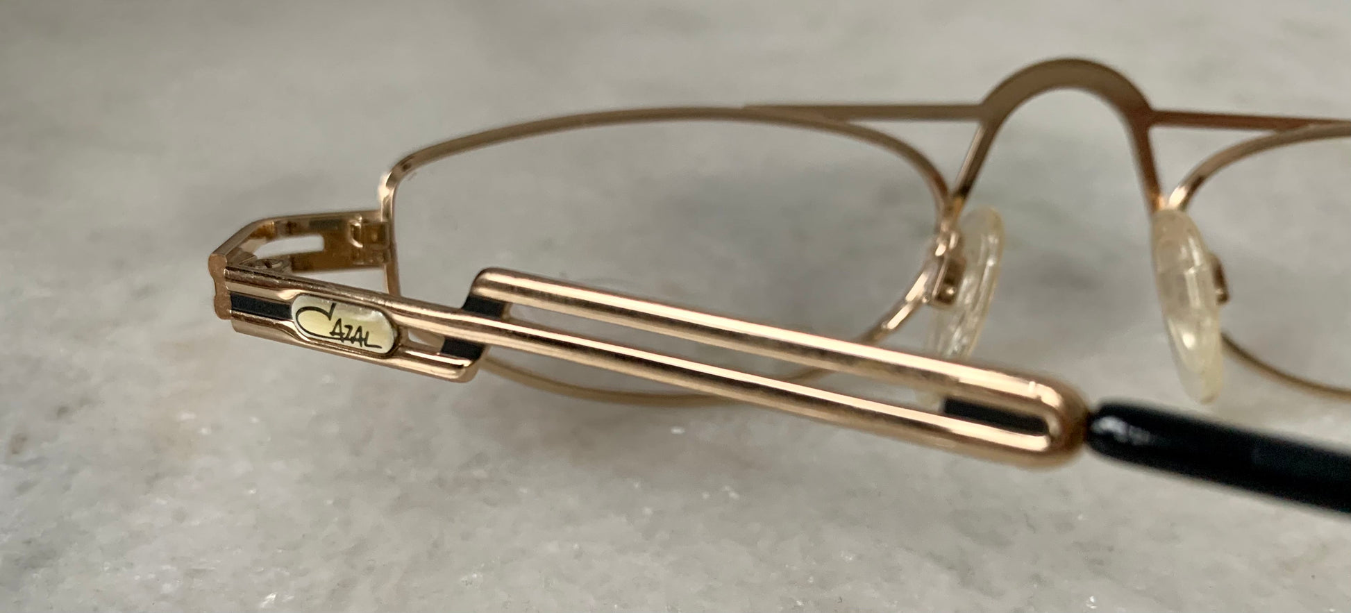 Golden metal frame with black detail and Cazal logo