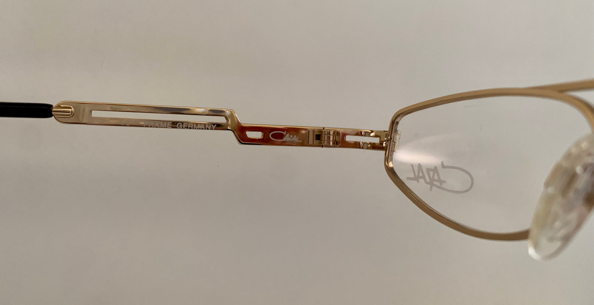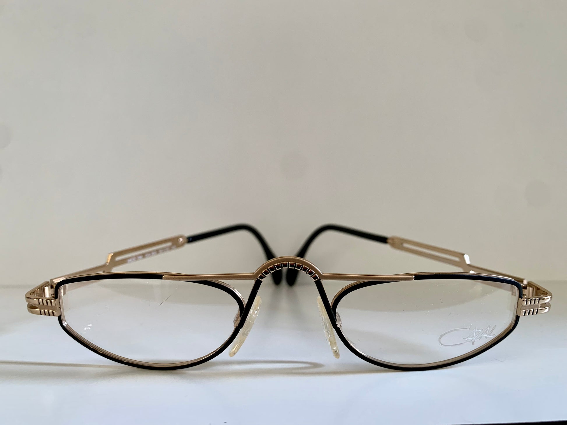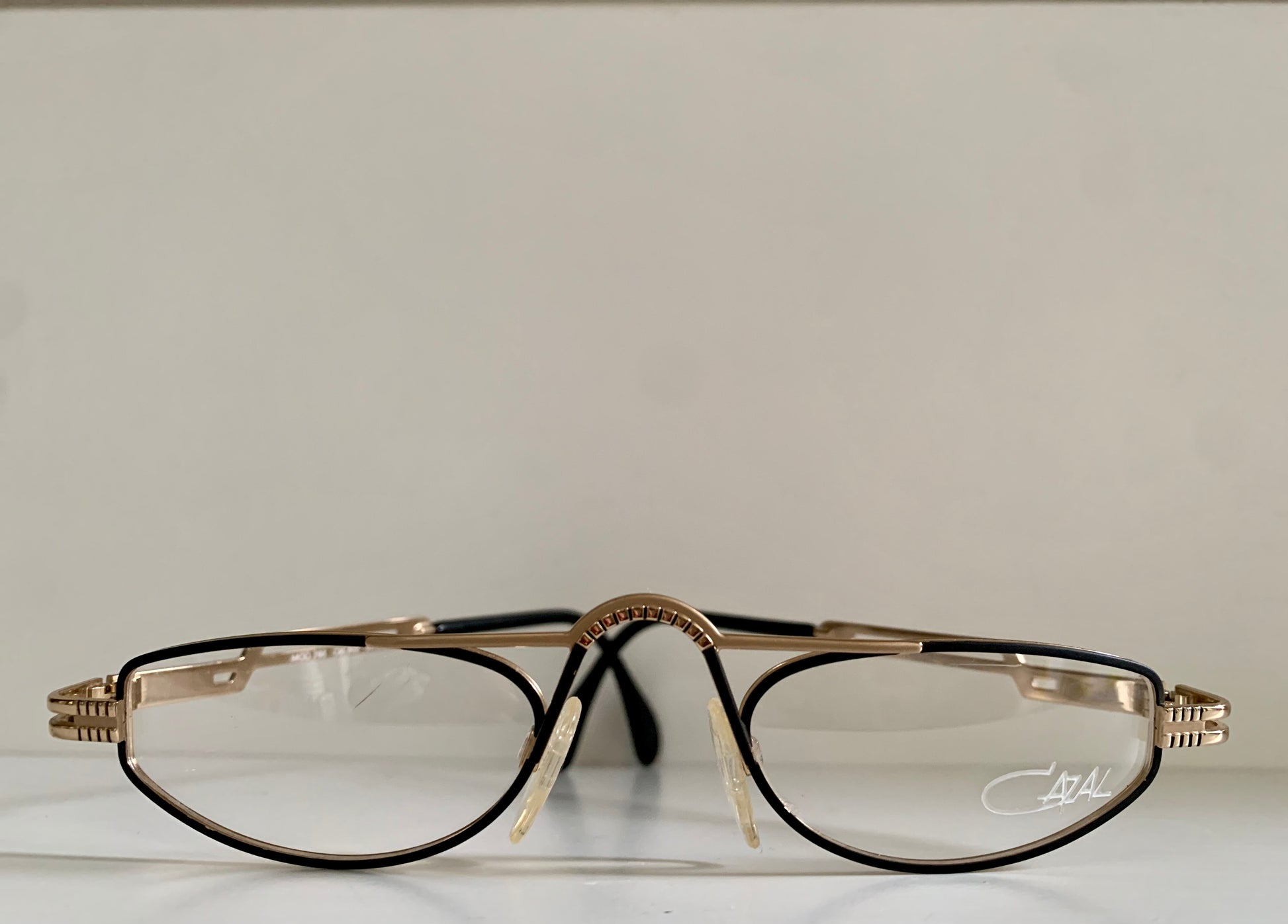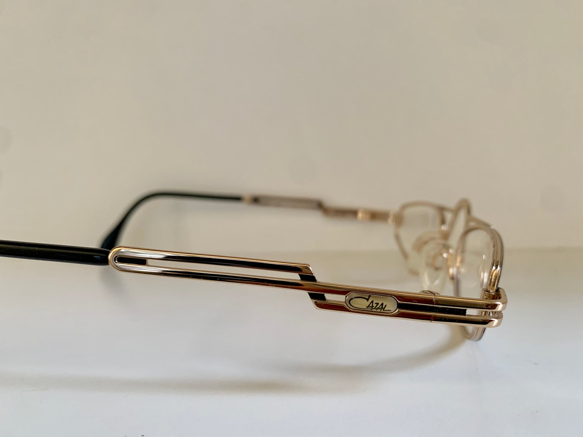 Golden metal frame with black detail and Cazal logo