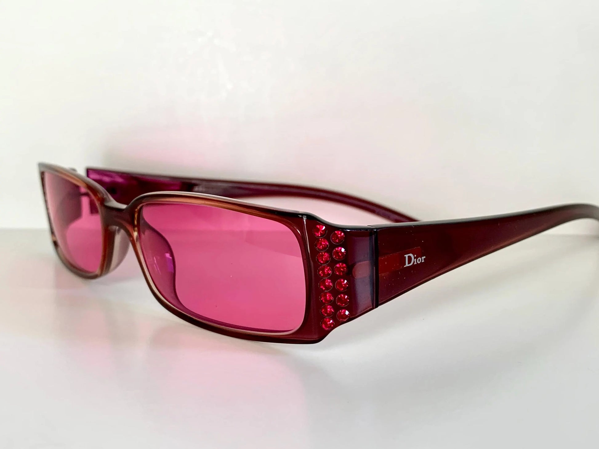 Vintage pink lenses and strass Christian Dior 00s Optyl sunglasses made in Italy.