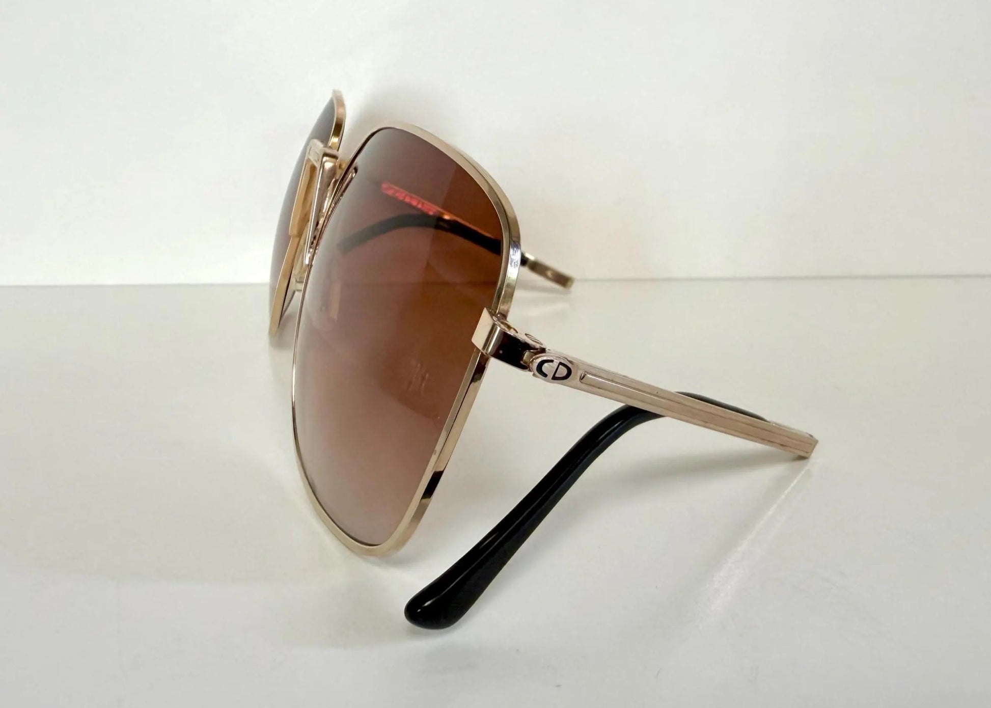 Frame: golden metal CD logos on the temples.