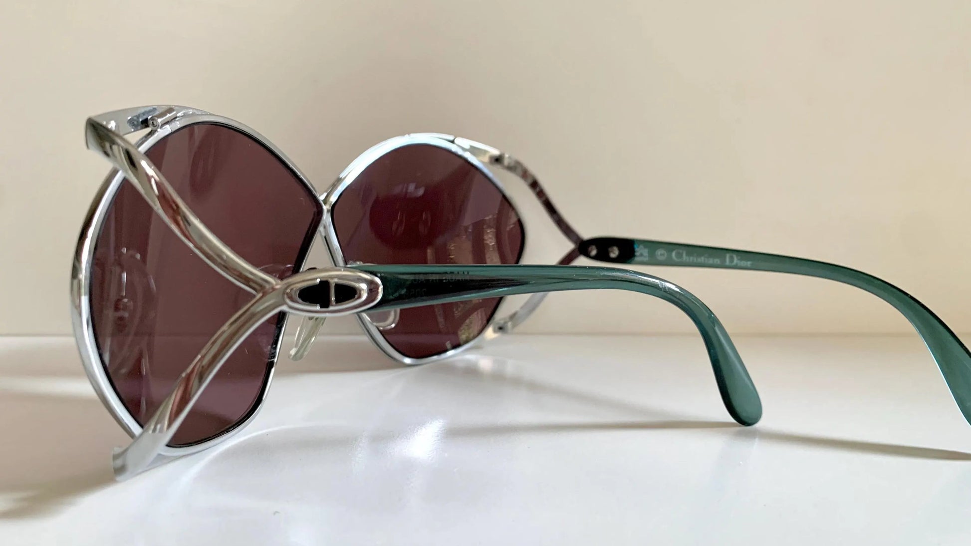 Christian Dior Vintage Sunglasses - 2056 XL silver and green frames