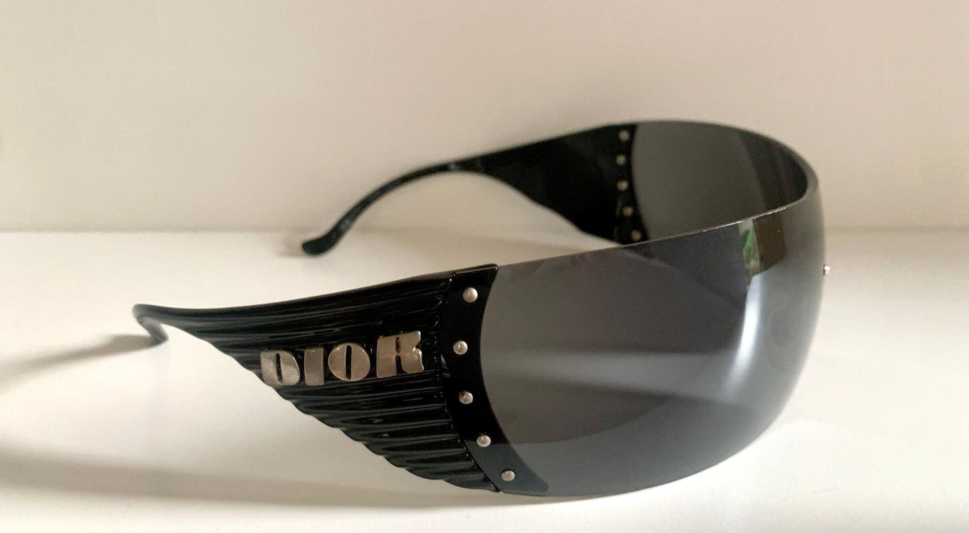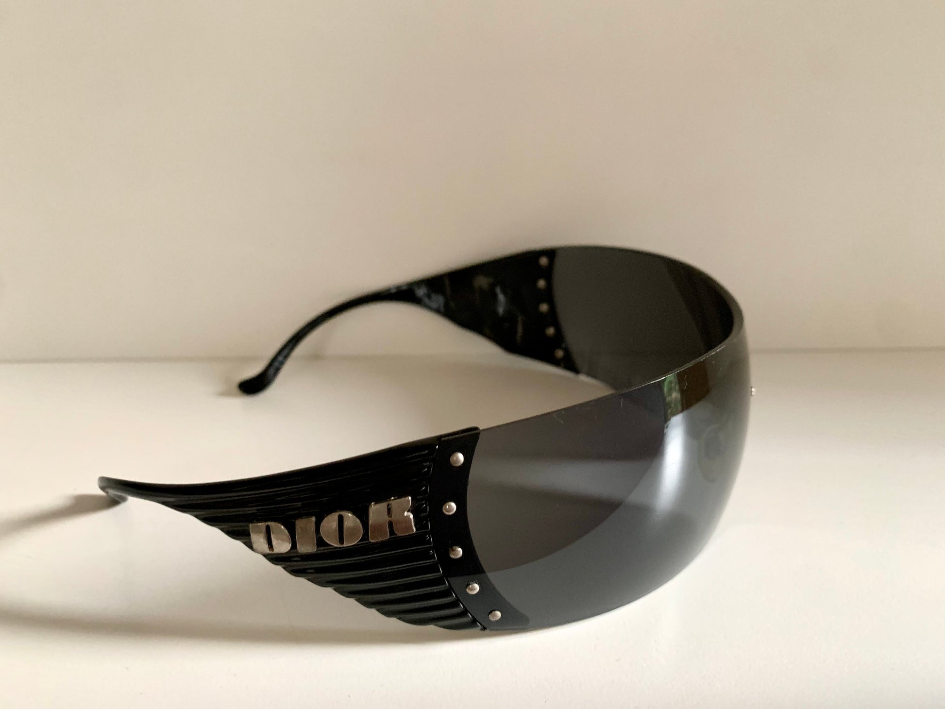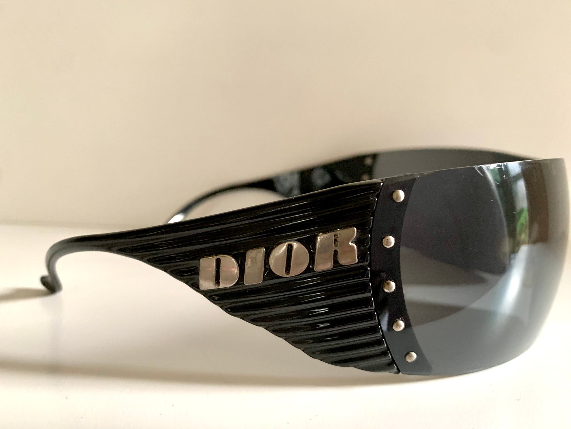 Rare vintage Christian Dior by Galliano 00s sunglasses Made in Italy. Model Dior Bike 4. Black with silver logos.