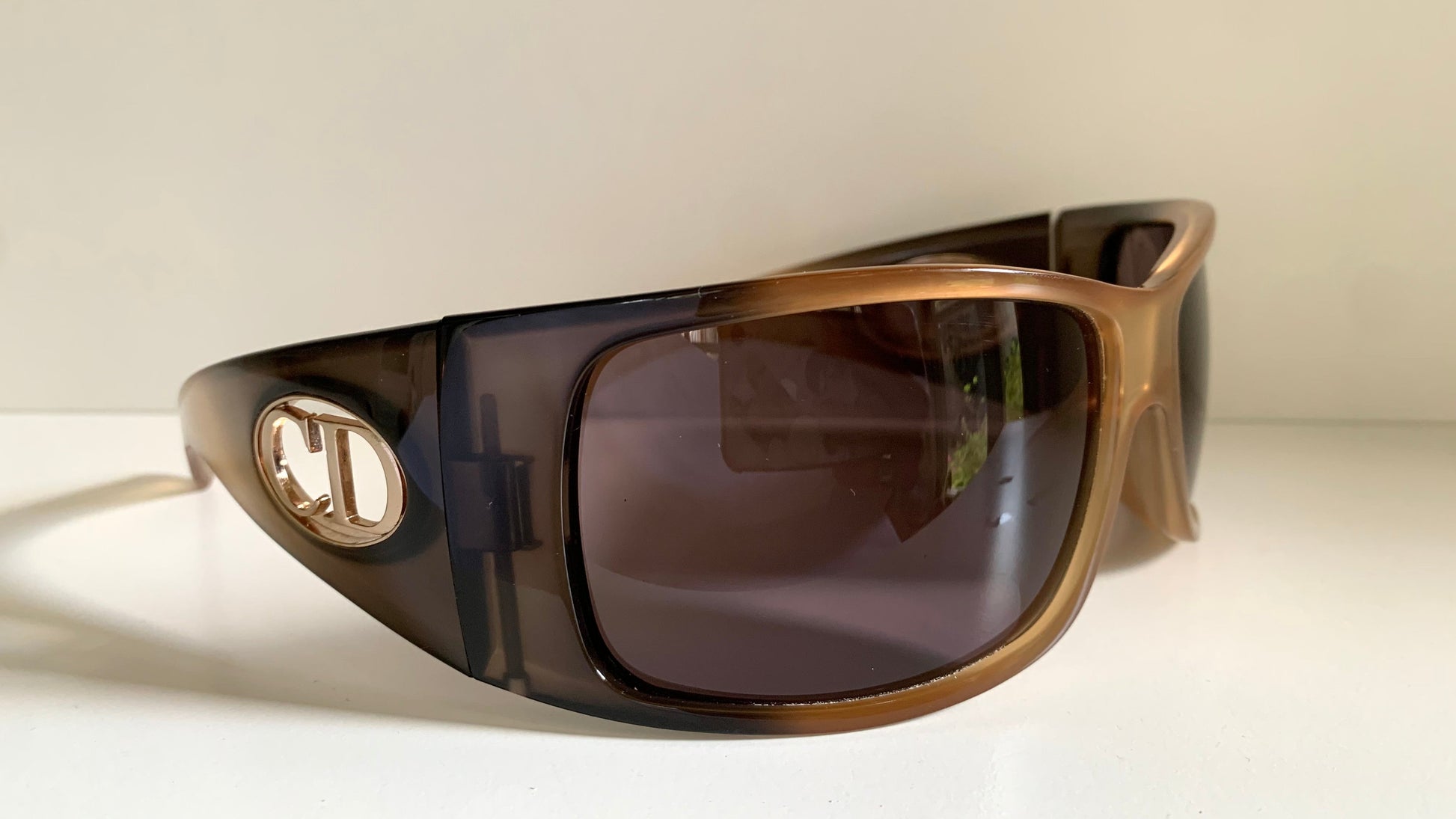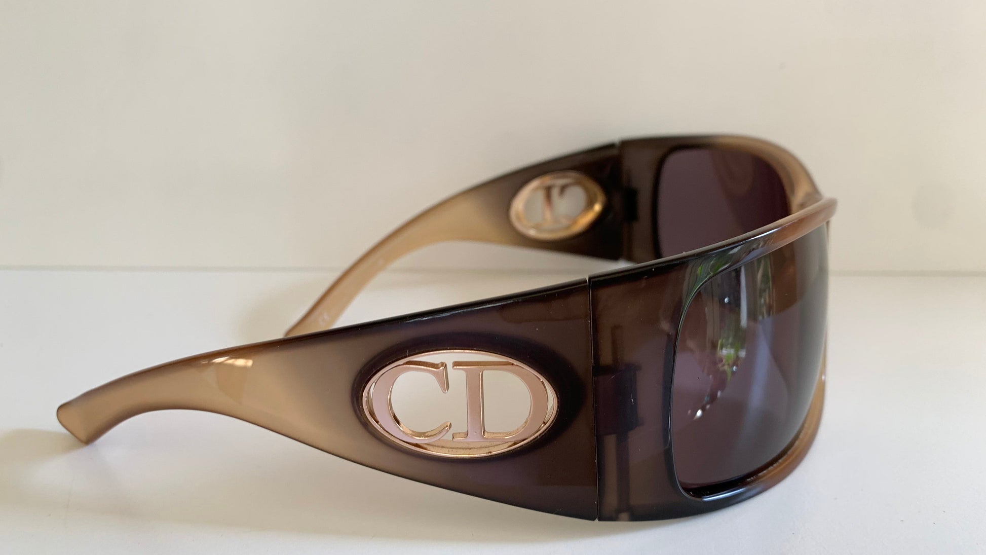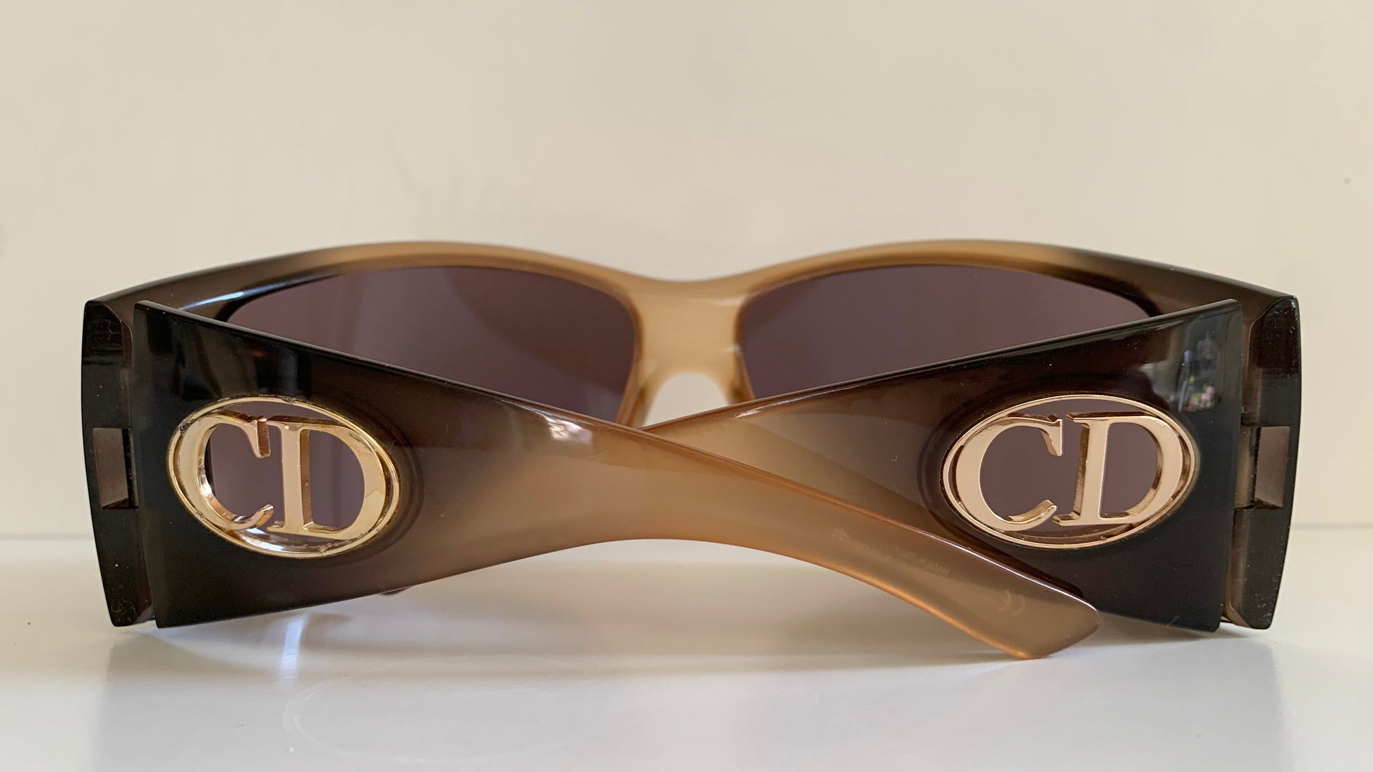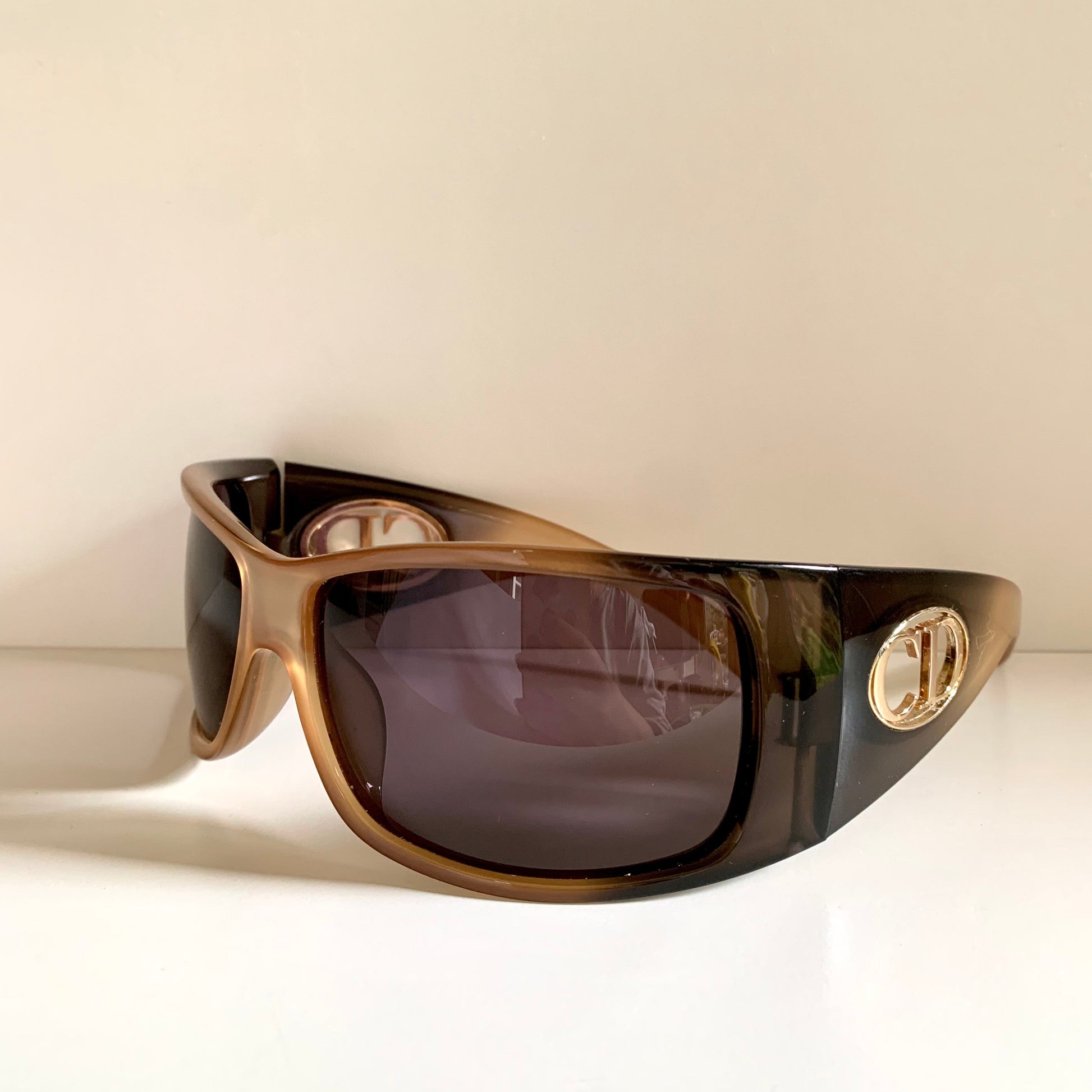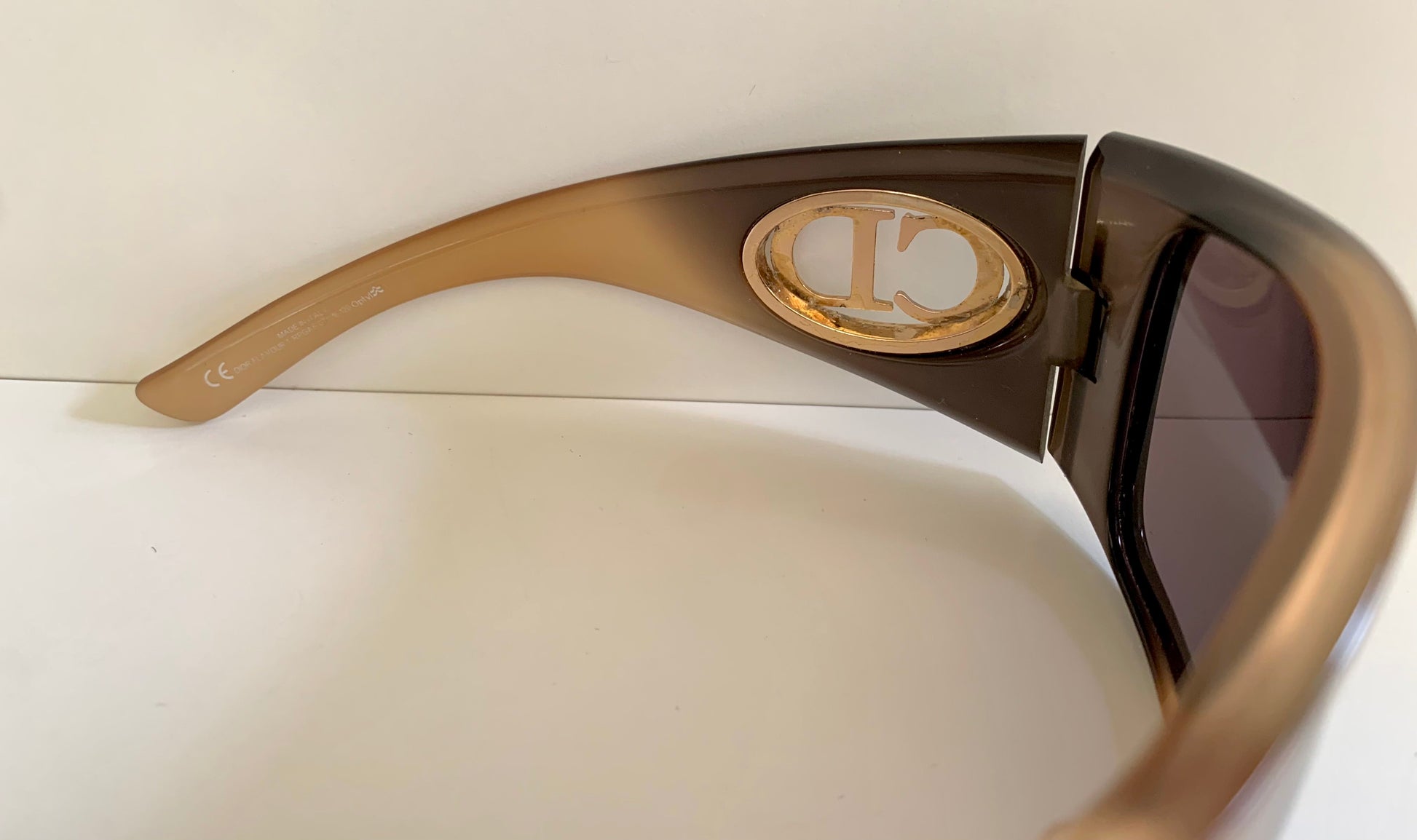 2 tone dark and light brown frame with gold Christian Dior logos