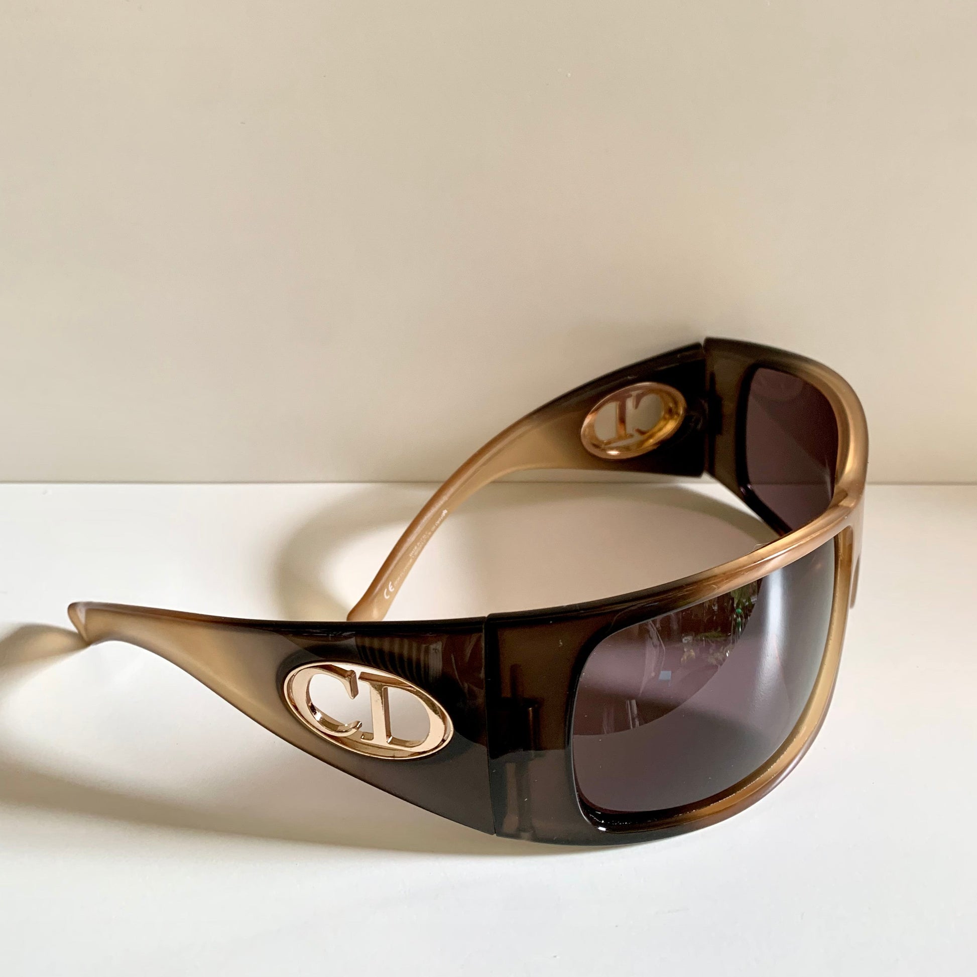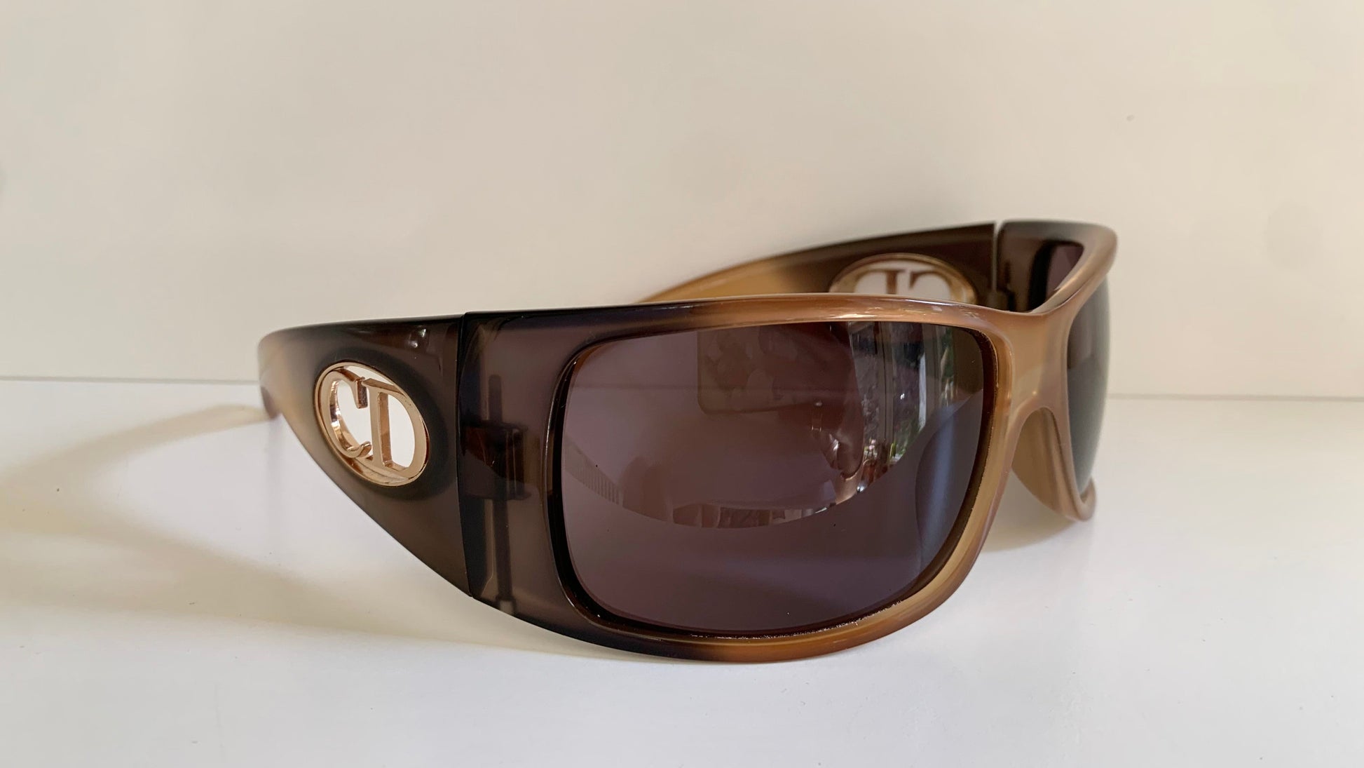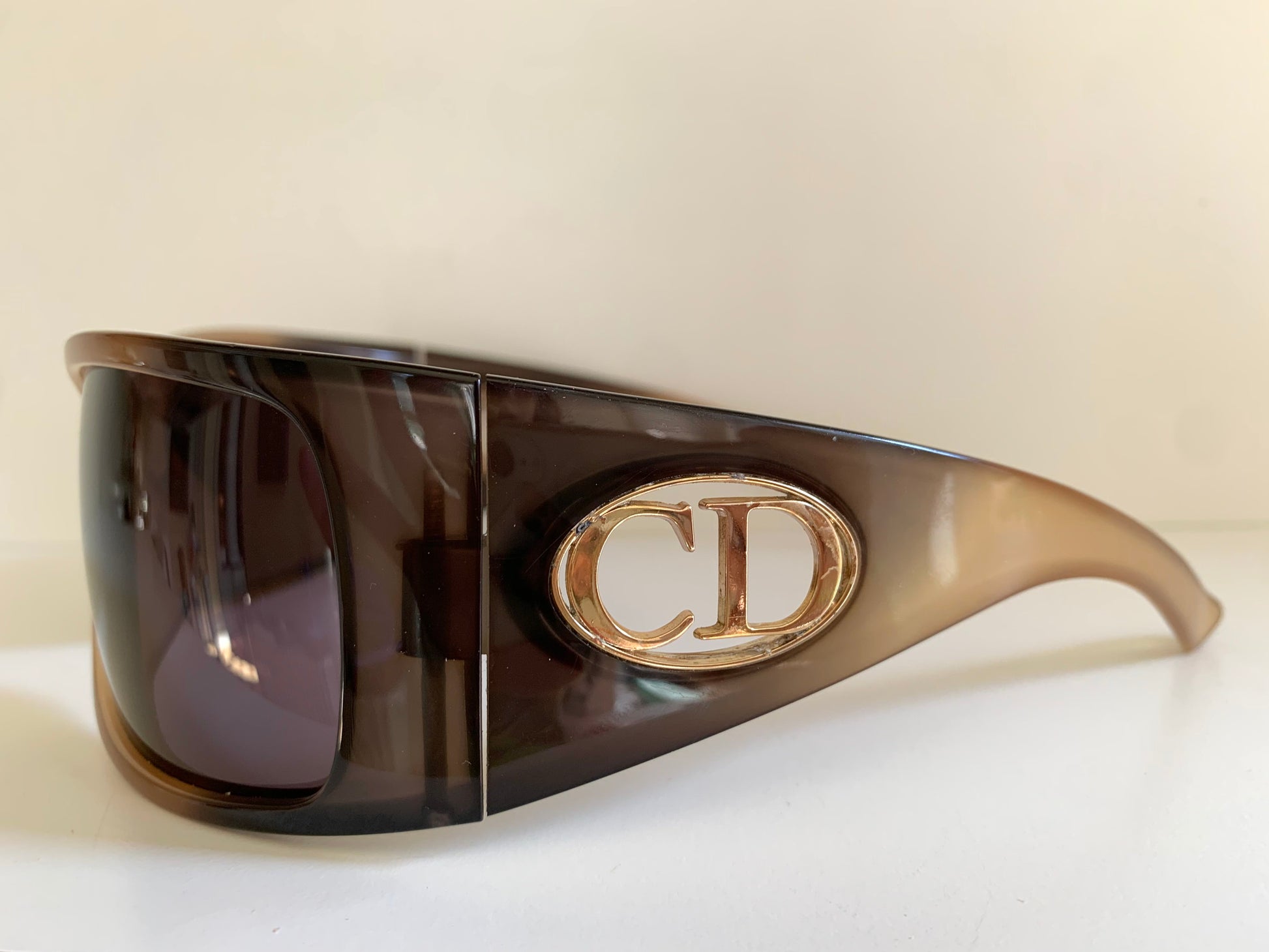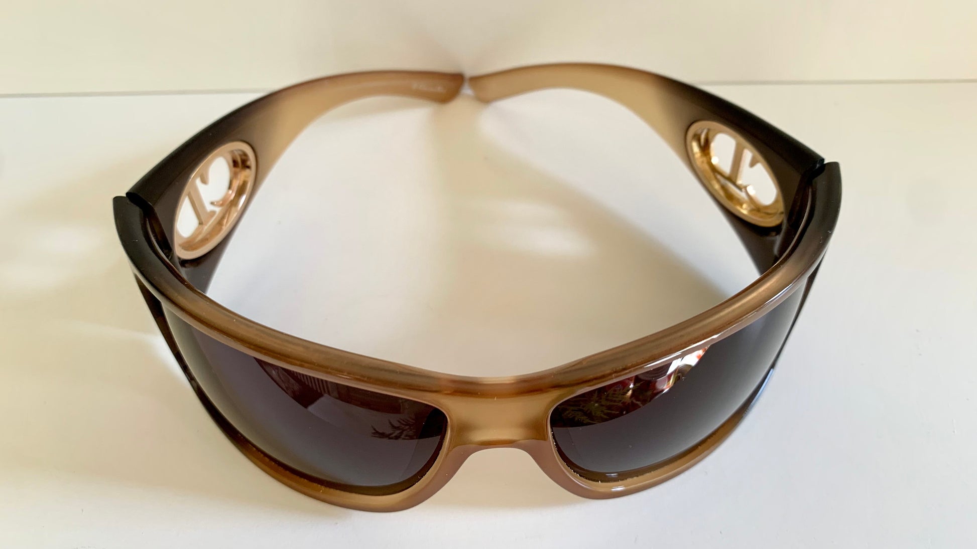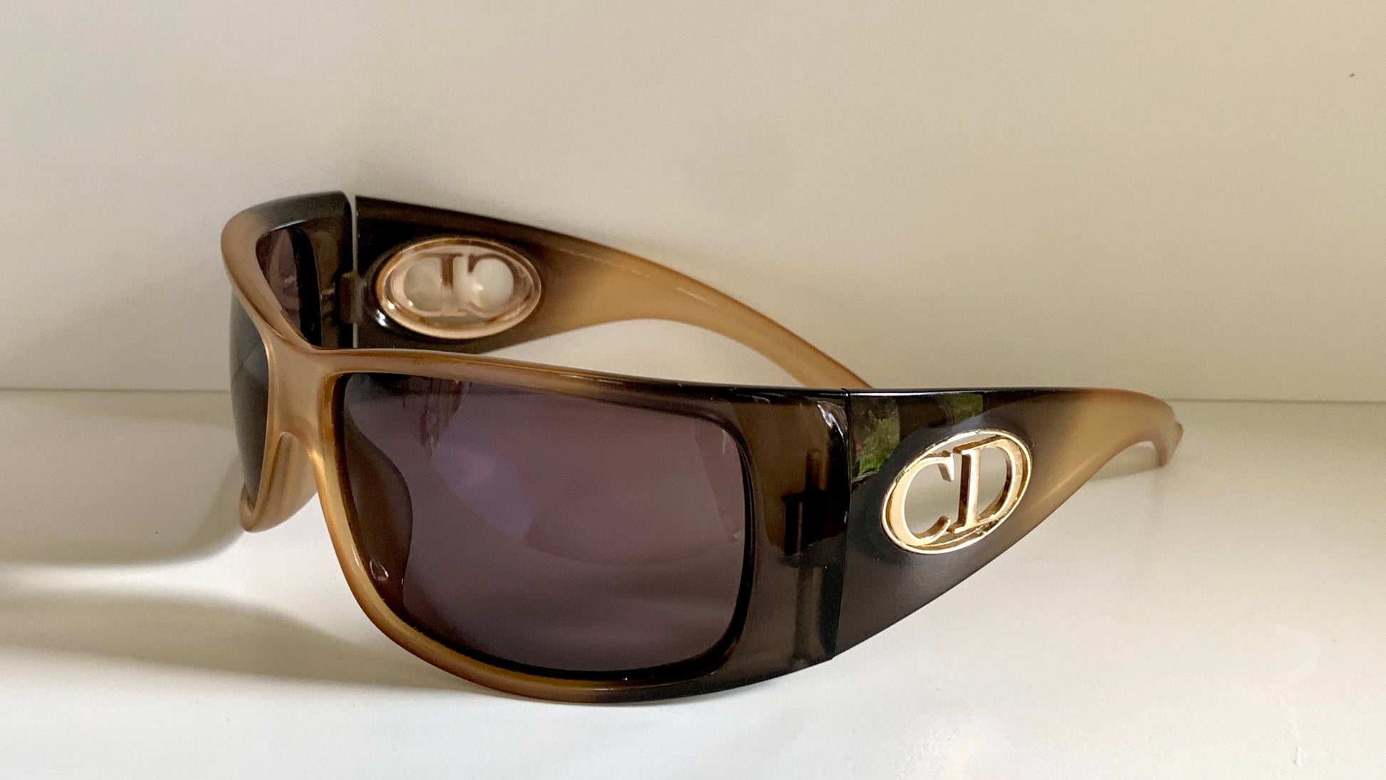 2 tone dark and light brown frame with gold Christian Dior logos