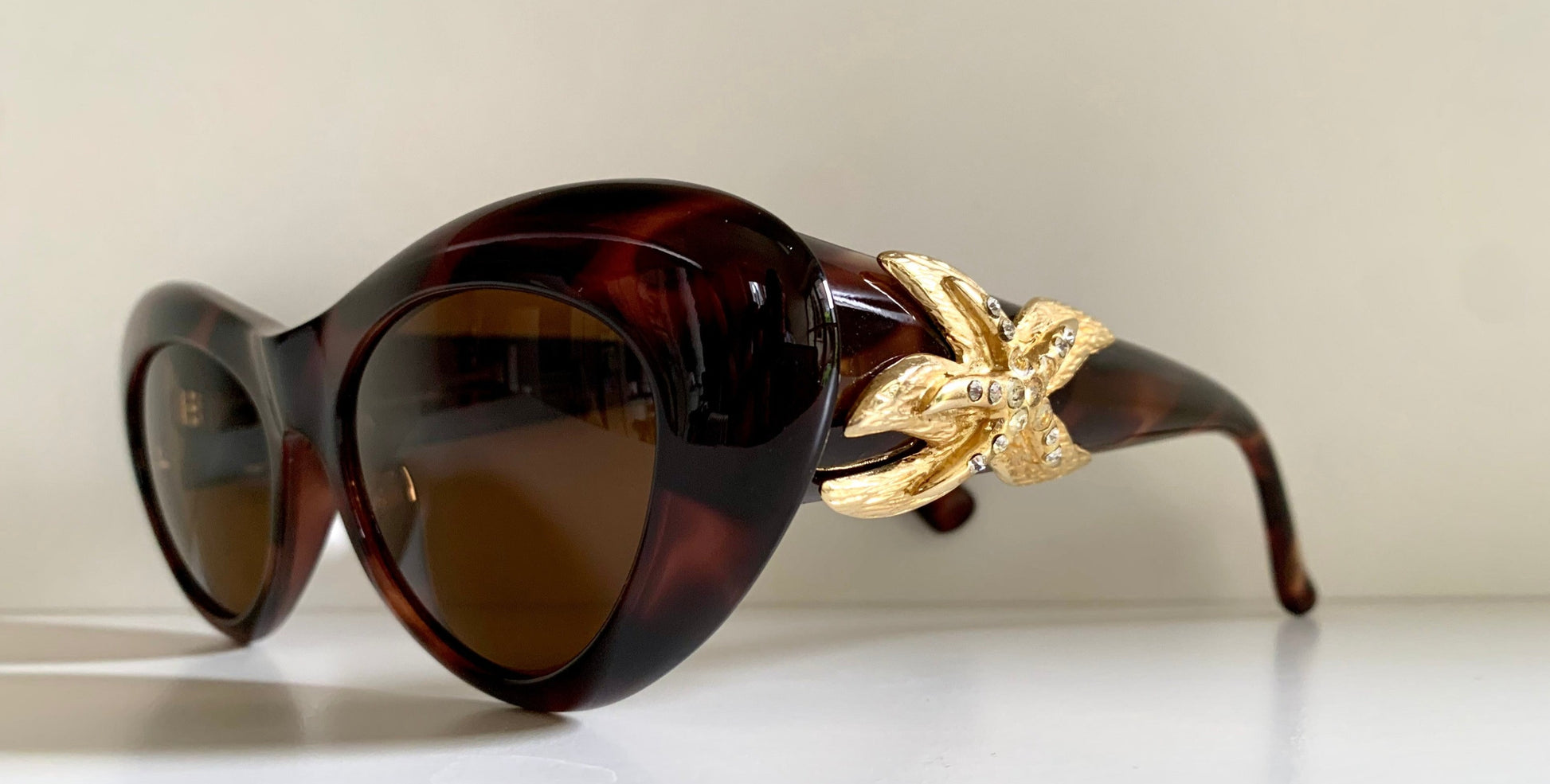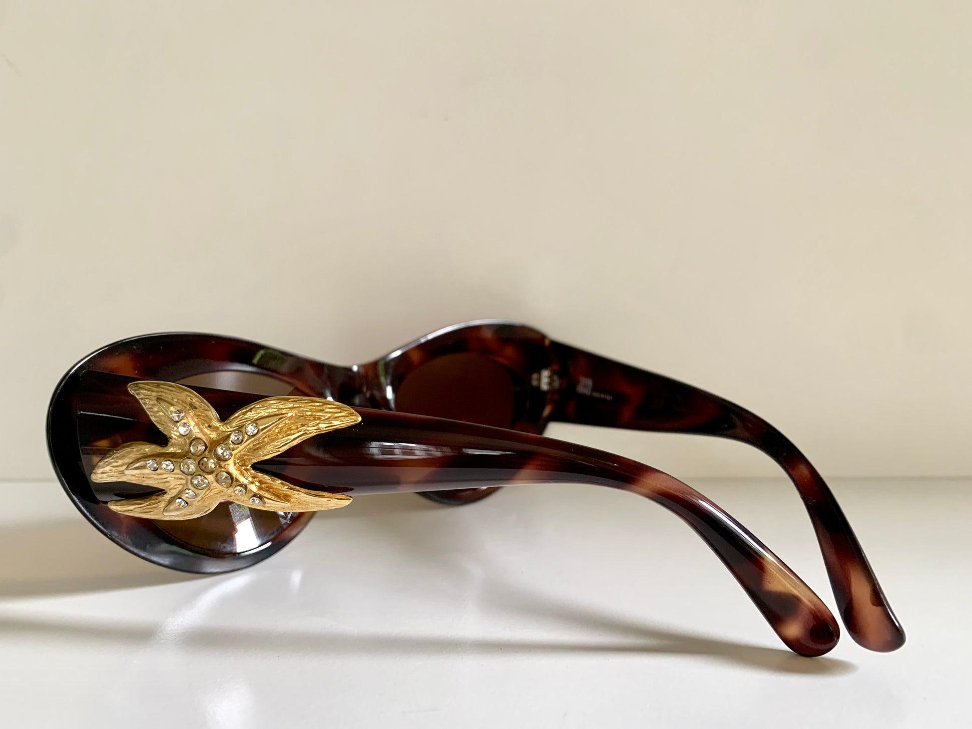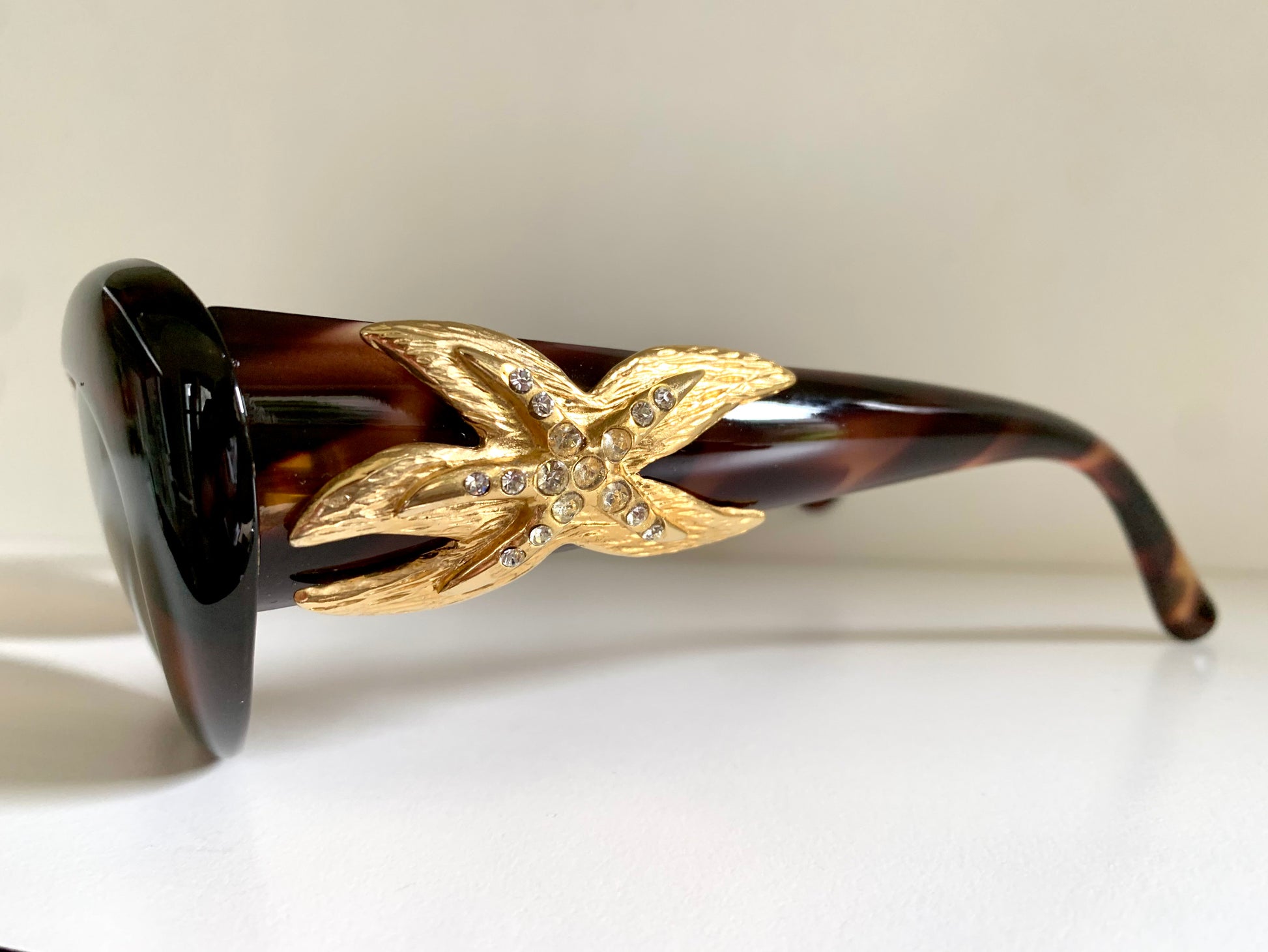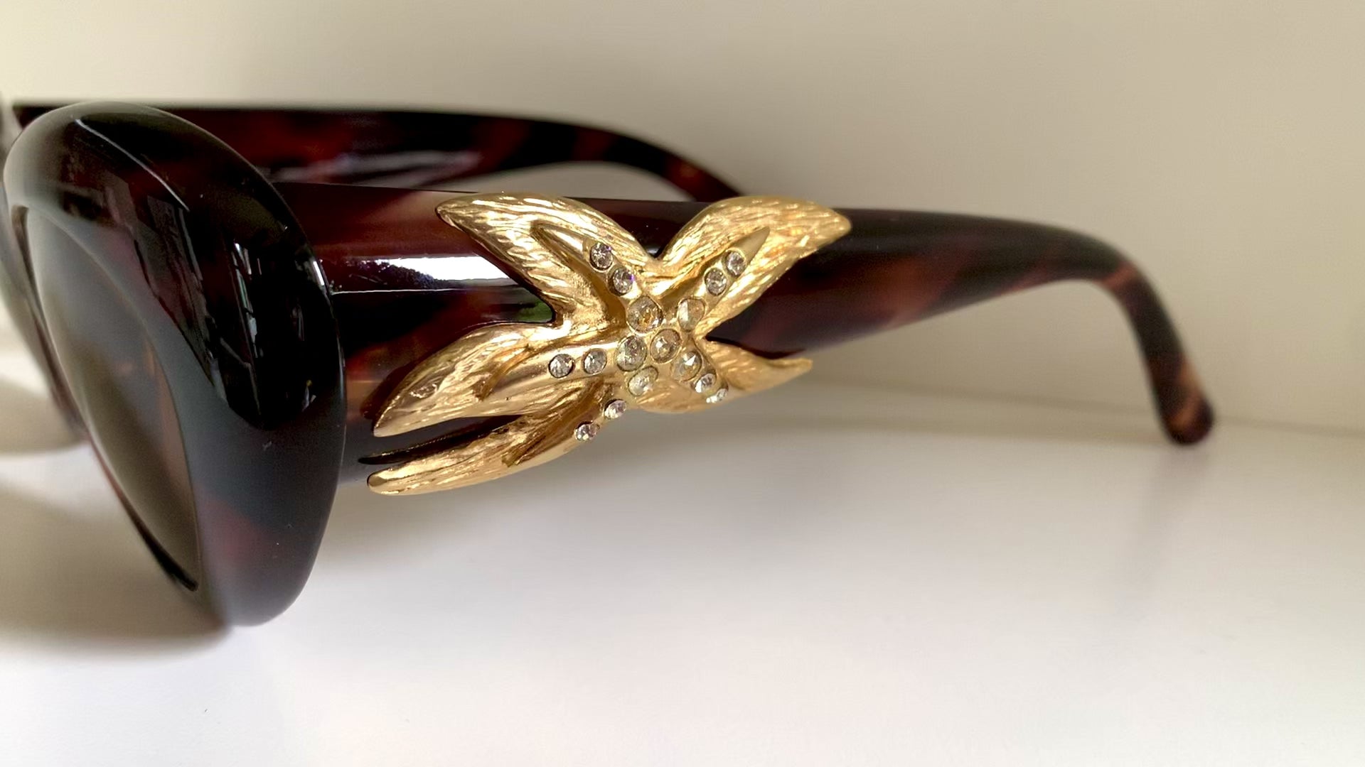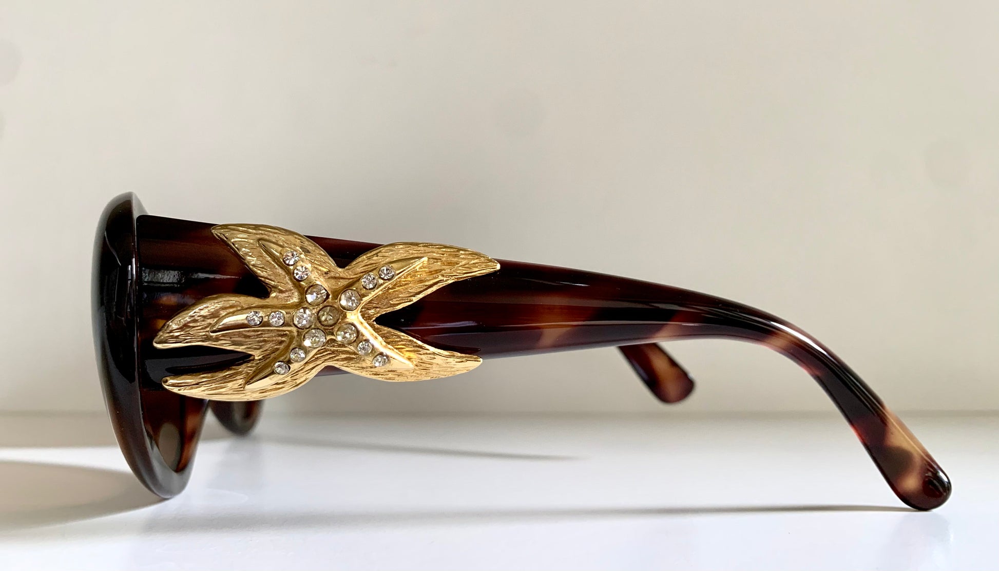 Tortoiseshell frame cat eye style with golden metal star on the temple.