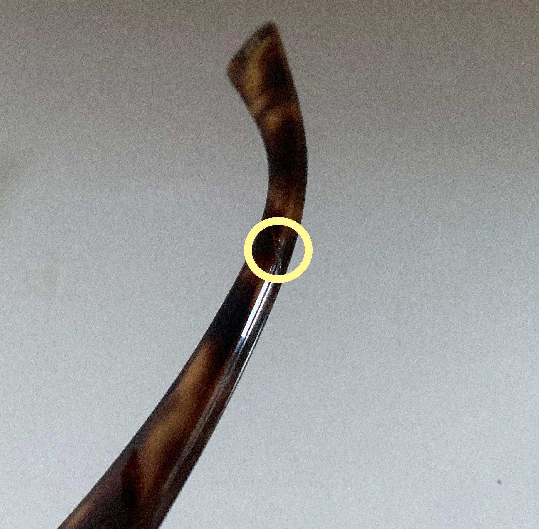 Condition: Great condition. One small mark at the end of the left temple, circled in the pictures.
