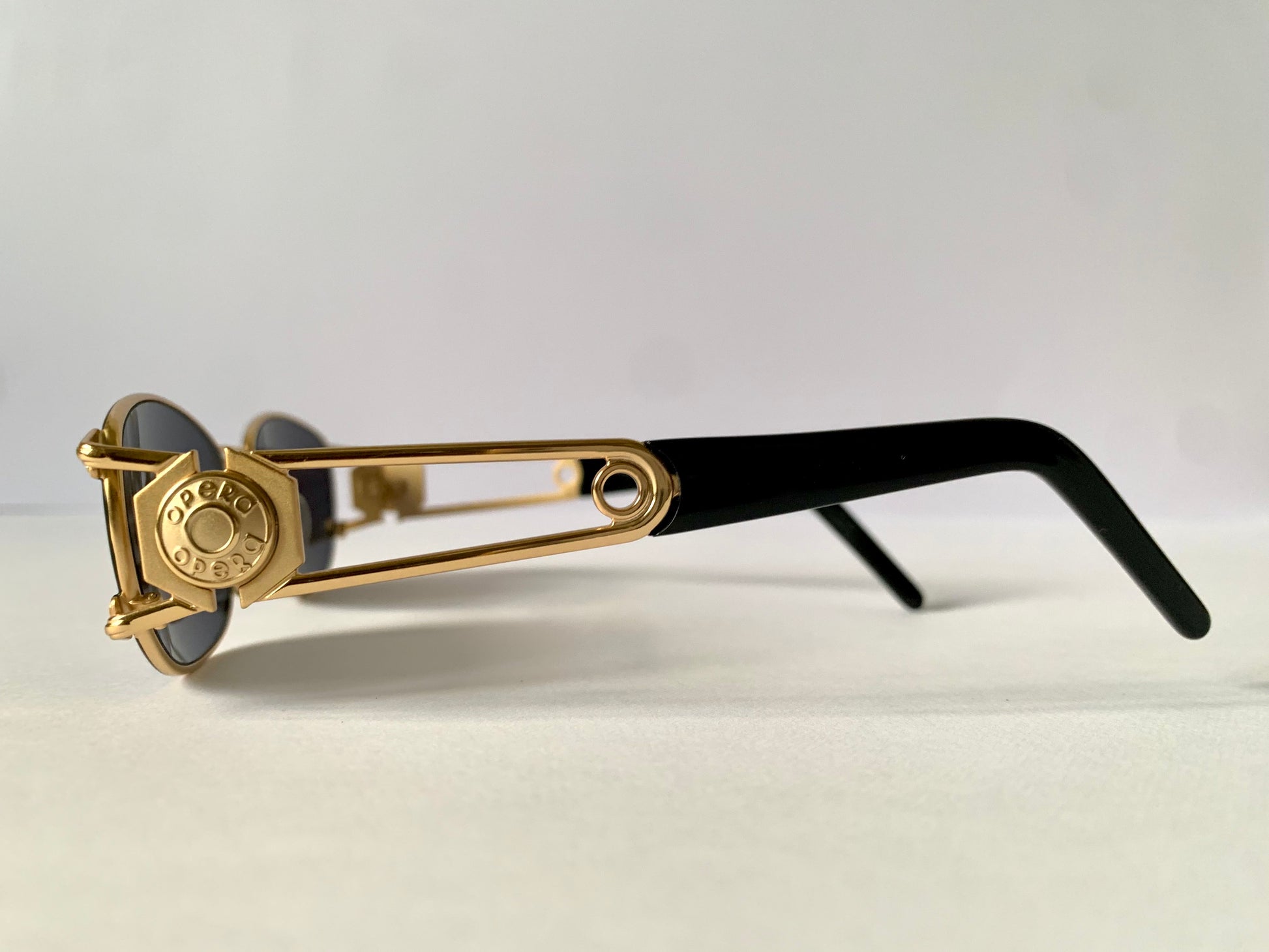Opera gold and black 90s vintage sunglasses. Made in Italy.