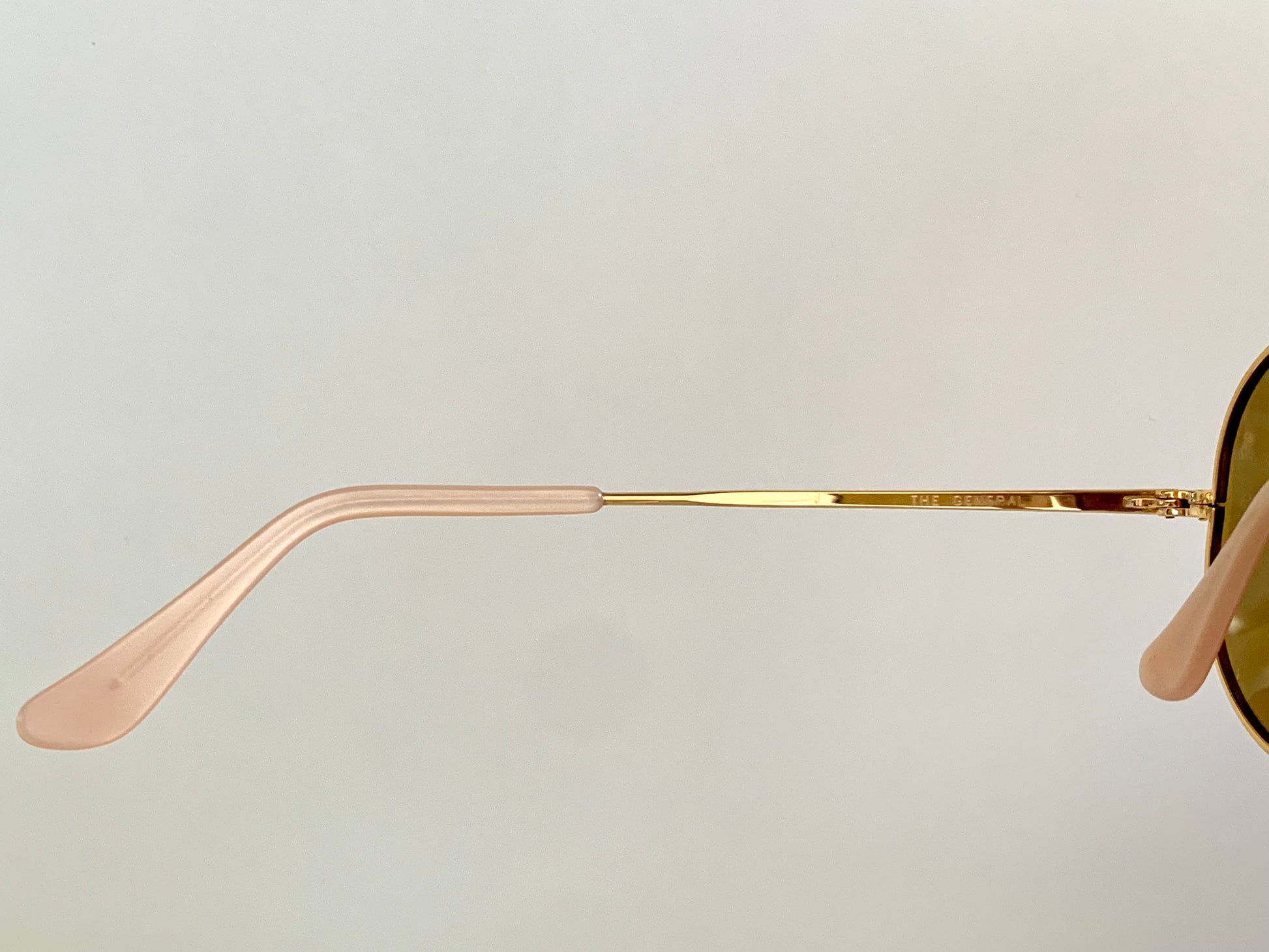 Gold plated frame - 58mm. This model was designed with a thicker frame and temples than regular aviator sunglasses, securing more durability for the frames.