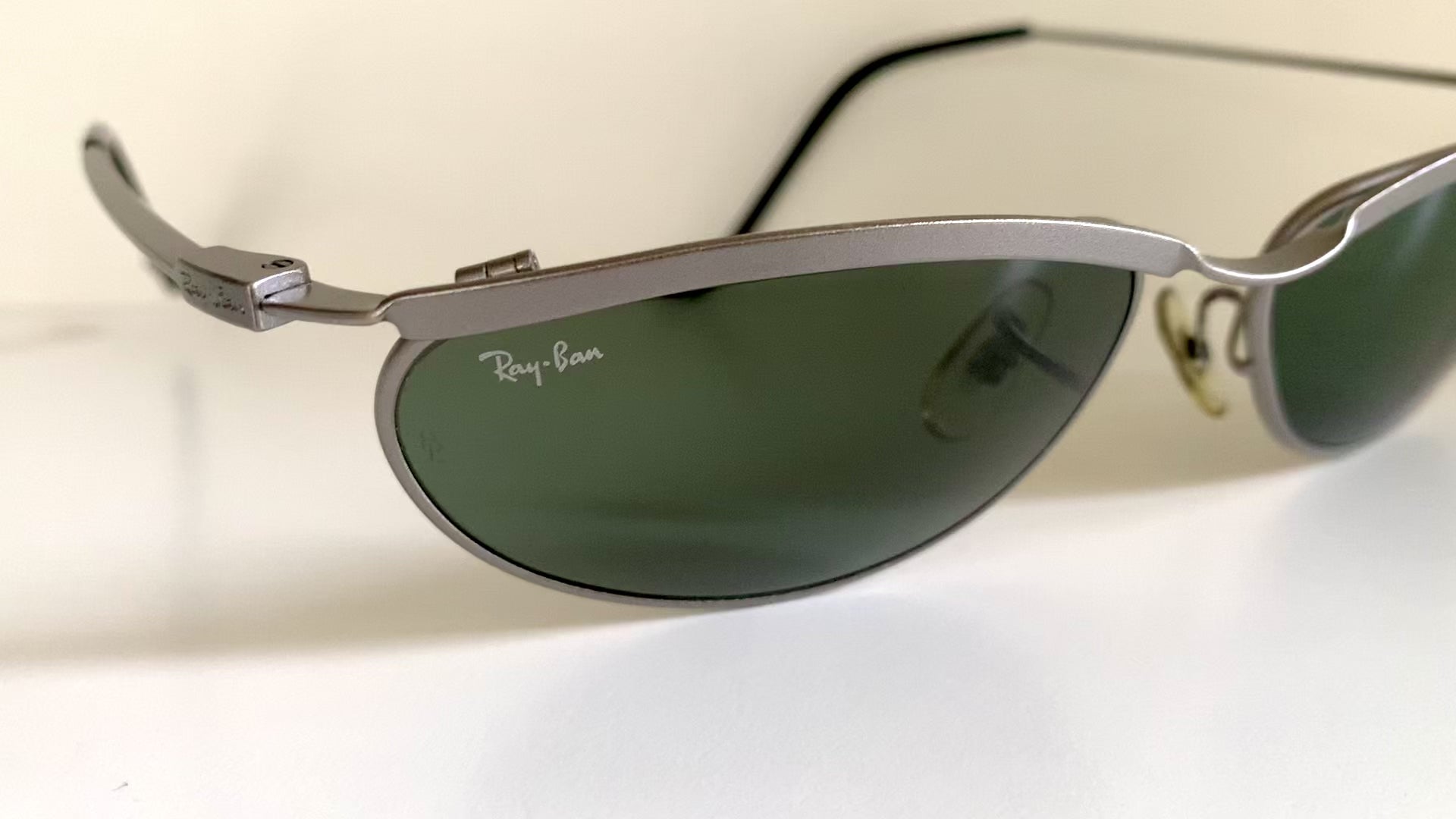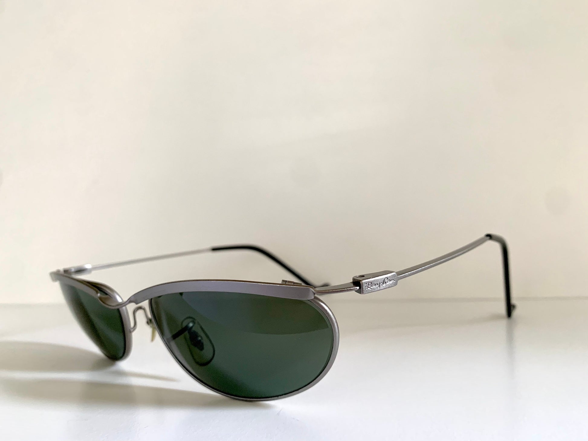 Beautiful early 90s Ray Ban USA by Bausch and Lomb Orbs New Deco metals W2566 sunglasses. Rare model.