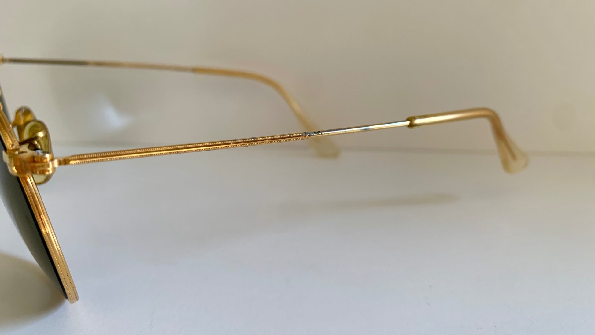 -Frame: 8/10 discoloration at the end of the temples and small mark on the upper right lens. Not visible when worn.