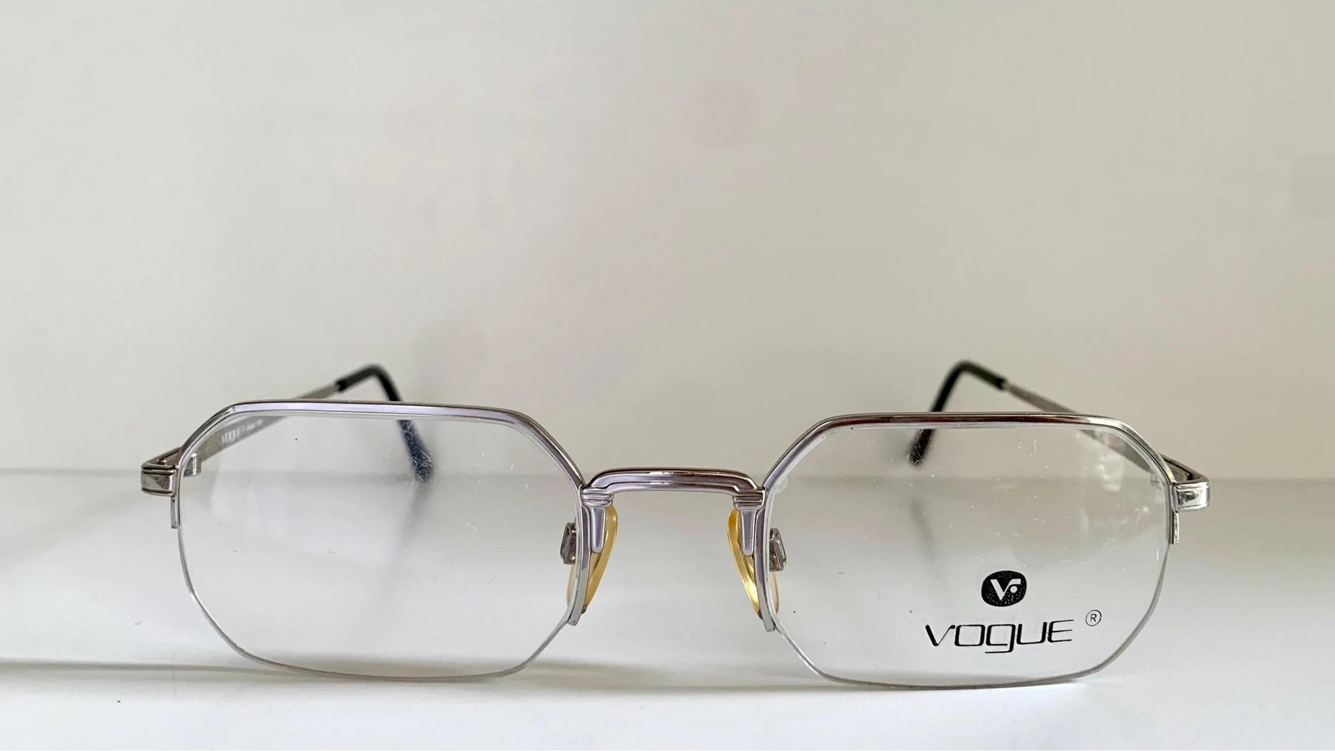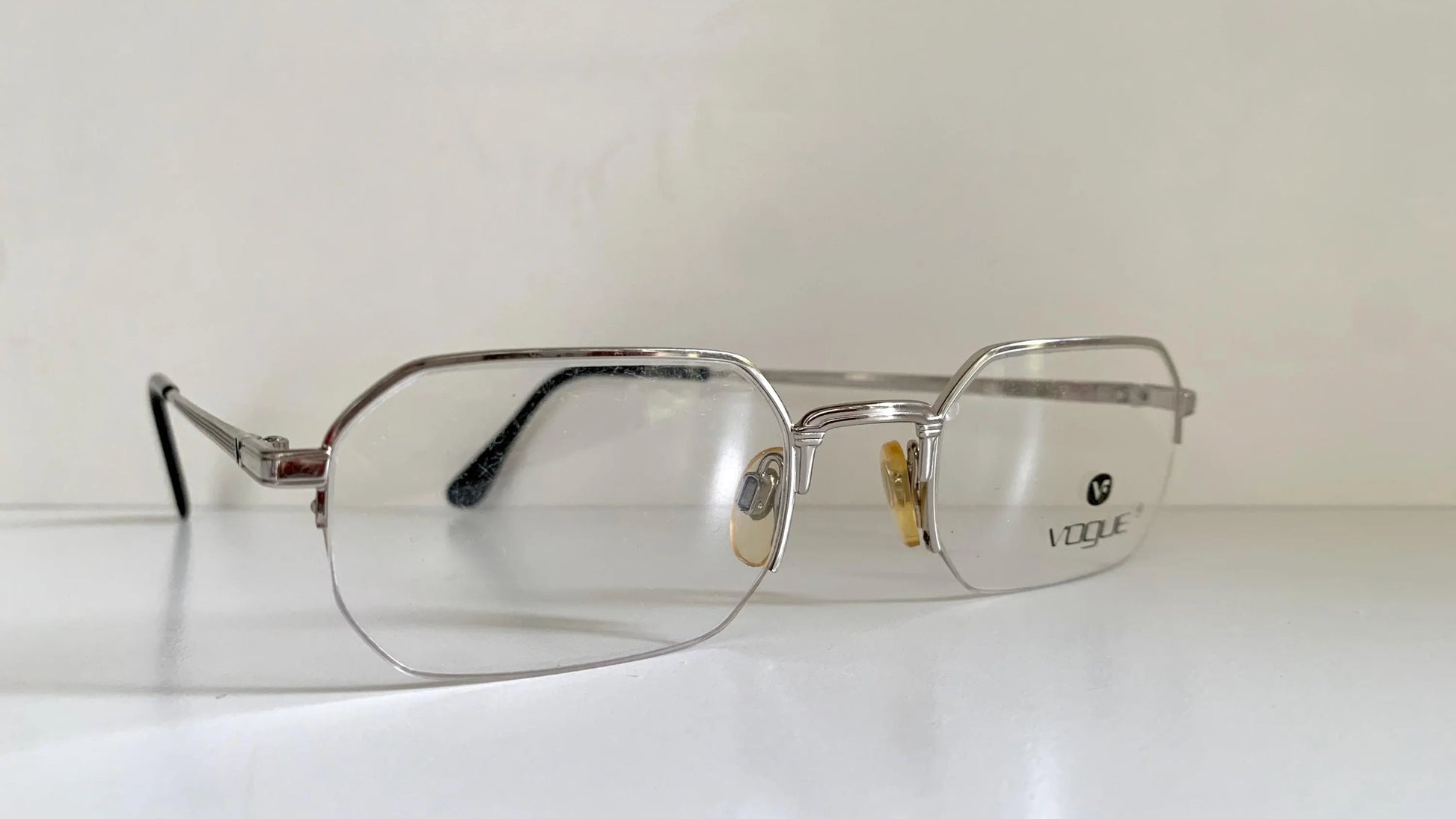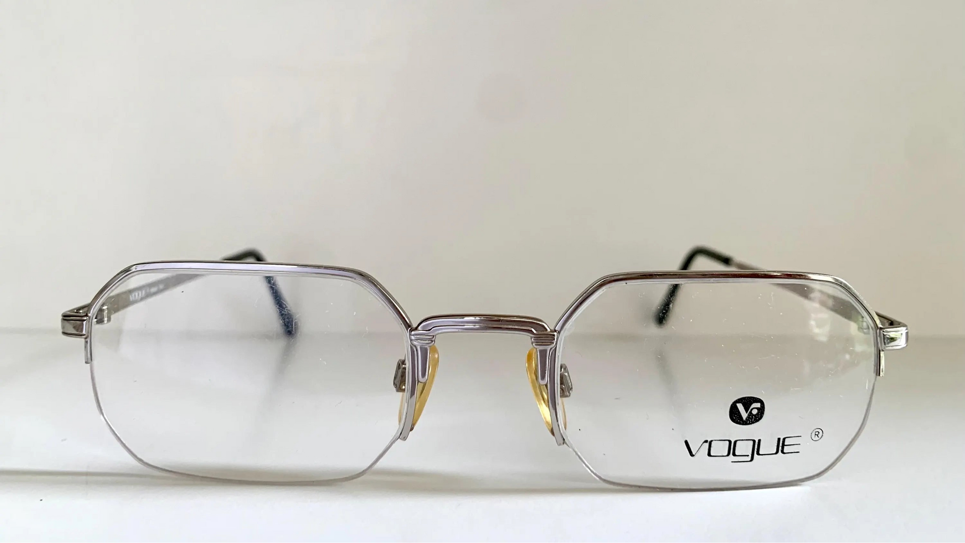 Vogue 80s vintage glasses - silver semi-rimless octogonal frame